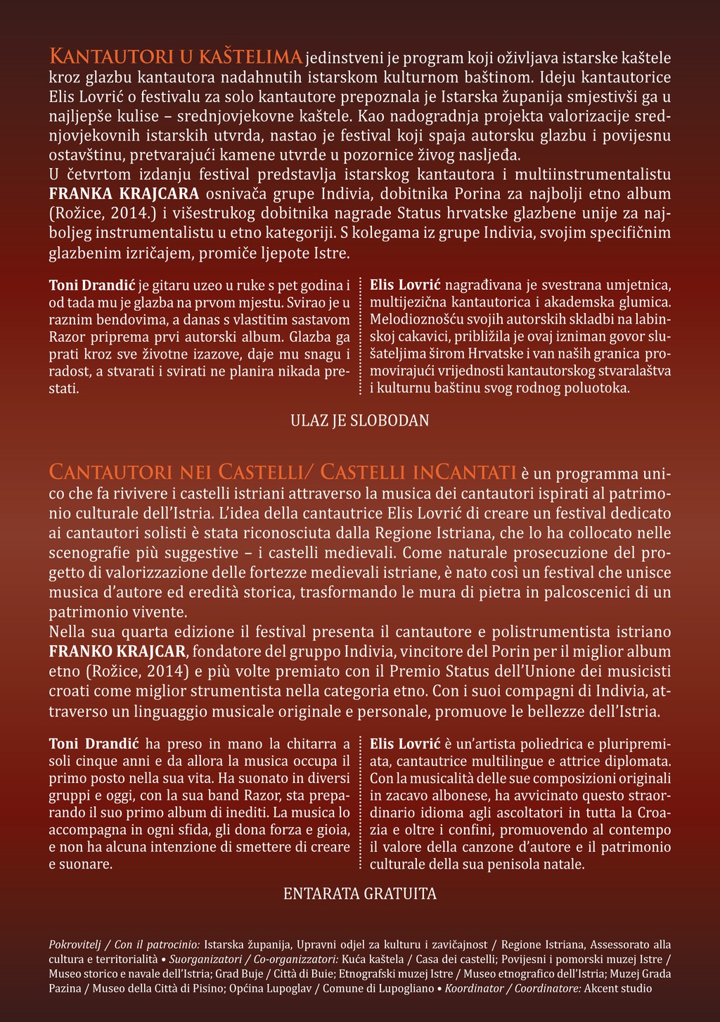 Jedinstveni je program koji oživljava istarske kaštele kroz glazbu kantautora nadahnutih istarskom kulturnom baštinom. Ideju kantautorice Elis Lovrić o festivalu za solo kantautore prepoznala je Istarska županija smjestivši ga u najljepše kulise – srednjovjekovne kaštele. Kao nadogradnja projekta valorizacije srednjovjekovnih istarskih utvrda, nastao je festival koji spaja autorsku glazbu i povijesnu ostavštinu, pretvarajući kamene utvrde u pozornice živog